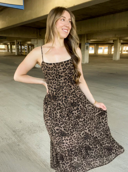 Love Endlessly Leopard Print Corset Spaghetti Strap Midi Maxi Dress
