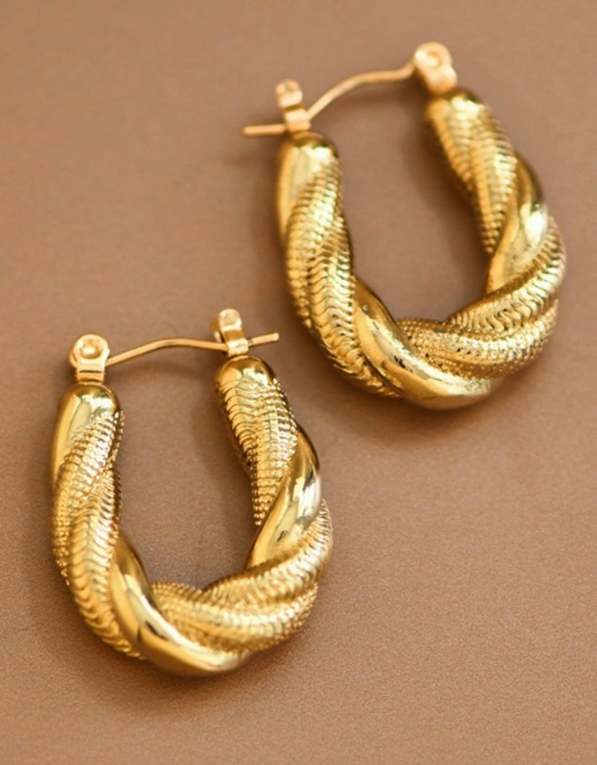 There's nothing like the glamour of the Timeless Gold Twisted Statement Hoop Earrings! Shiny, gold-toned metal shape these elegant earrings that have a unique twisted design and are hypoallergenic, waterproof, fade-resistant, and tarnish-free!